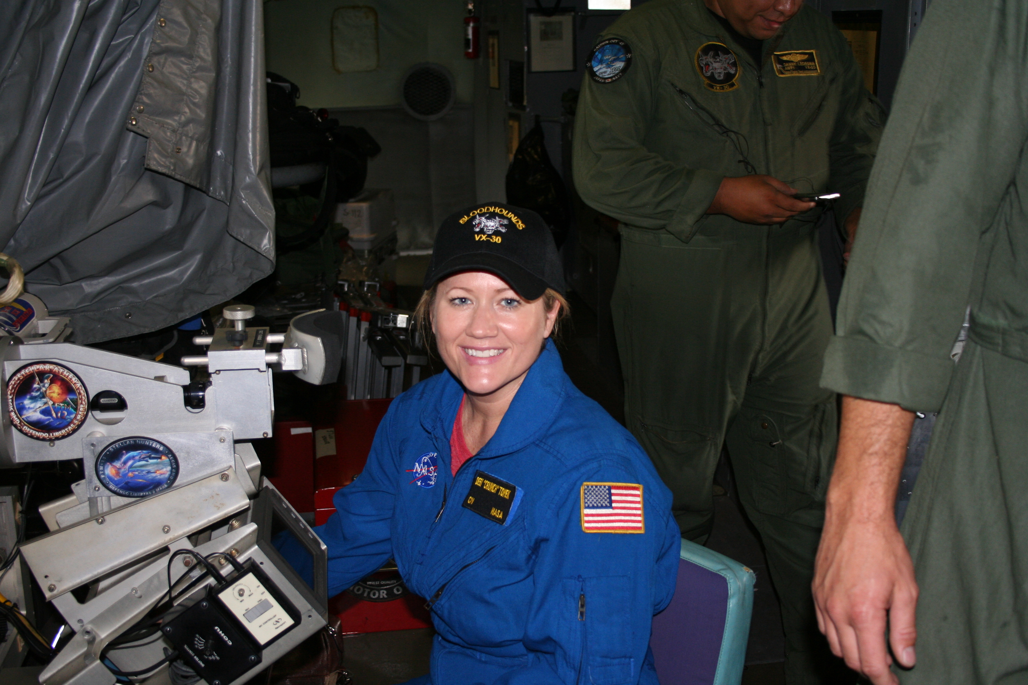 STS-132 Debbie Tomek operating telescope on the P-3 Navy P-3 ready for the mission Crew of the Cast Glance Navy P-3 Black body radiator equipment used for calibration The team hard at work in mission control